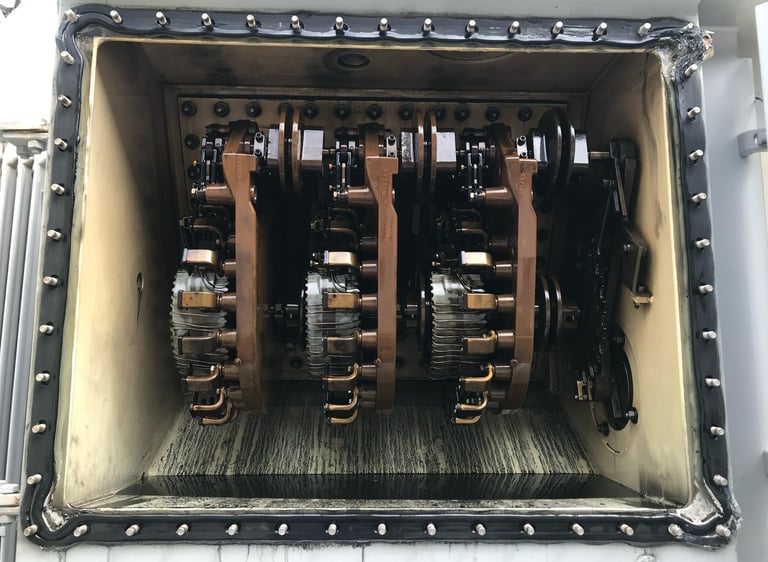 Aplicamos protocolos estrictos y herramientas especializadas para el mantenimiento de OLTCs (cambiadores de tomas bajo carga)